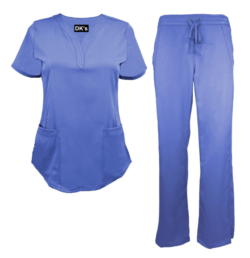Stretch women nursing scrubs set blue